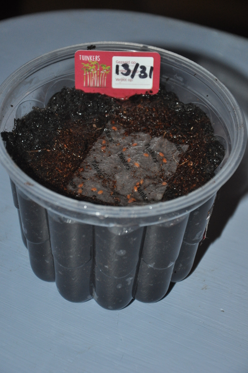 De schoonmoeder van de boerin kwam vanmiddag op de koffie en bracht mee……haar eerste moestuintje van Appie Heijn van dit jaar.