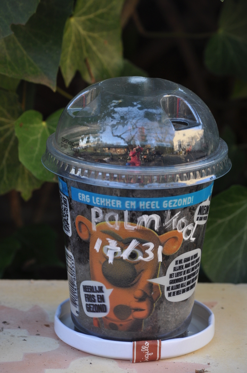 Al gaten in de deksel en ook onderin dus even op een schoteltje zetten waar wij weer een deksel voor gebruiken.