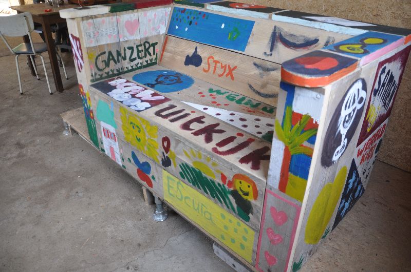 En wat is de bank gaaf geworden heh?! Alle tape is eraf en zoveel mooie kunstwerken erop.