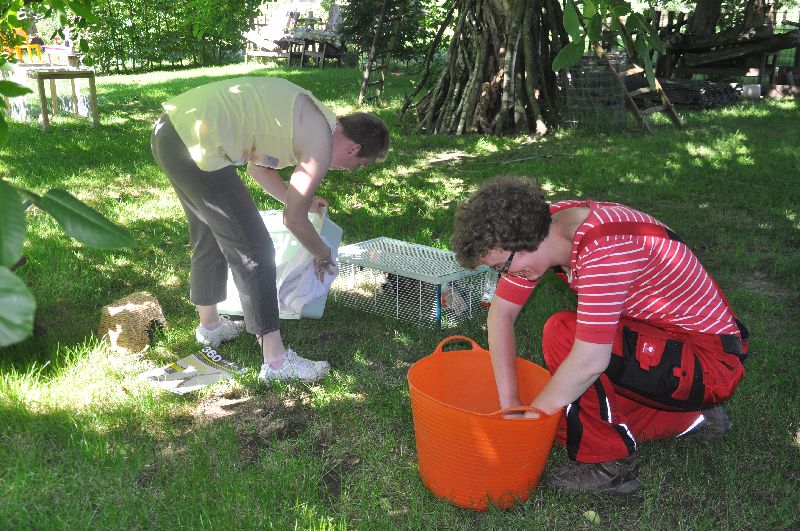 Alle dieren hebben weer schone huisjes en drinkbakken ook het zwembad van Bjorn namen de meiden spontaan even onder handen!