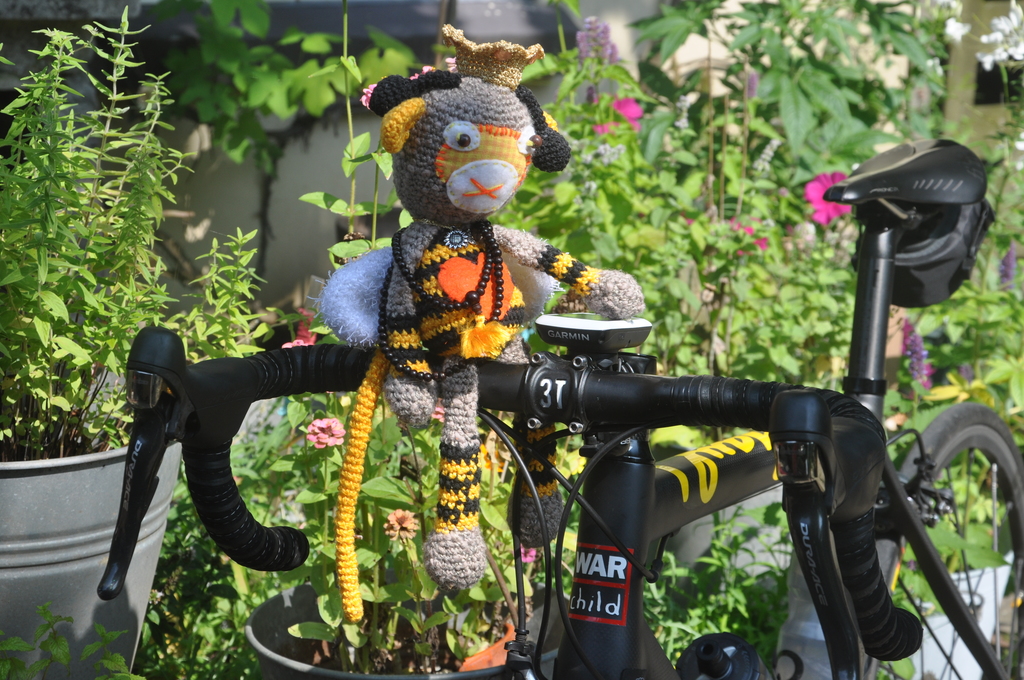 Vervolgens zet ze haar glas veilig op de tuintafel en klapt ze vol trots in haar handen voor jullie! Jullie die Berry op wat voor een manier dan ook gesteund hebben tijdens zijn monstertocht van 1200 kilometer, Paris Brest Paris! Jullie die mee hebben gedaan aan de veiling van Haakjuffie haar levenswerk.