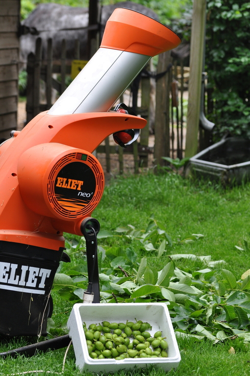 Die heeft de boerin er met een klein snoeischaartje weer vanaf geknipt en daar gaat ze notenlikeur van maken.