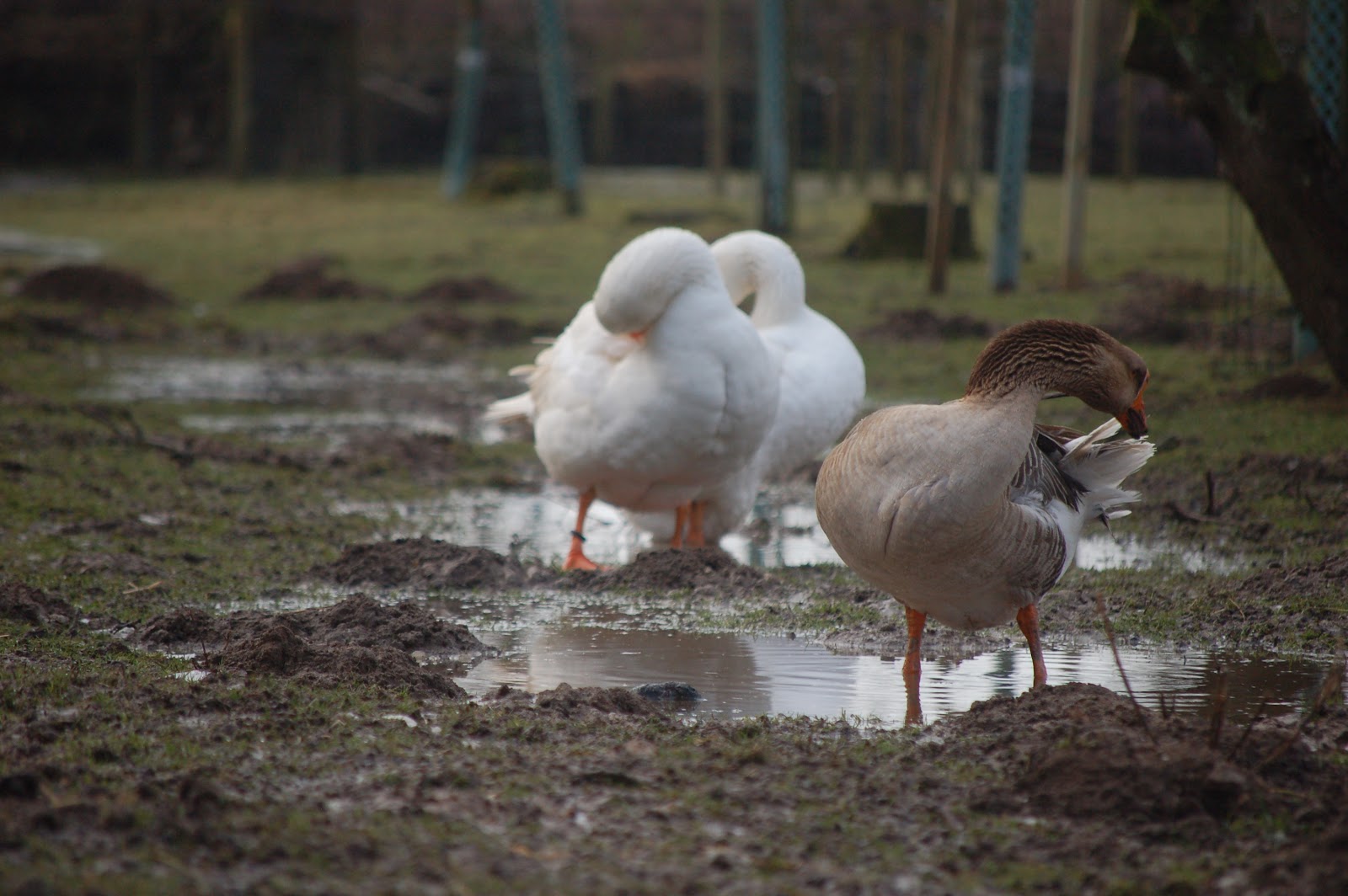 Lekker wassen in de plassen. Ik ben dus niet de enige die zo blij is dat de sneeuw is vertrokken. Dan maar lekkere modderpootjes op de keukenvloer. Vandaag was het erg rustig op de tuinderij, de pont is uit de vaart, zieken en een auto-loze tuinder. Gelukkig kwam collega Jeffrey nog wel een kakelvers eitje eten tussen de middag.