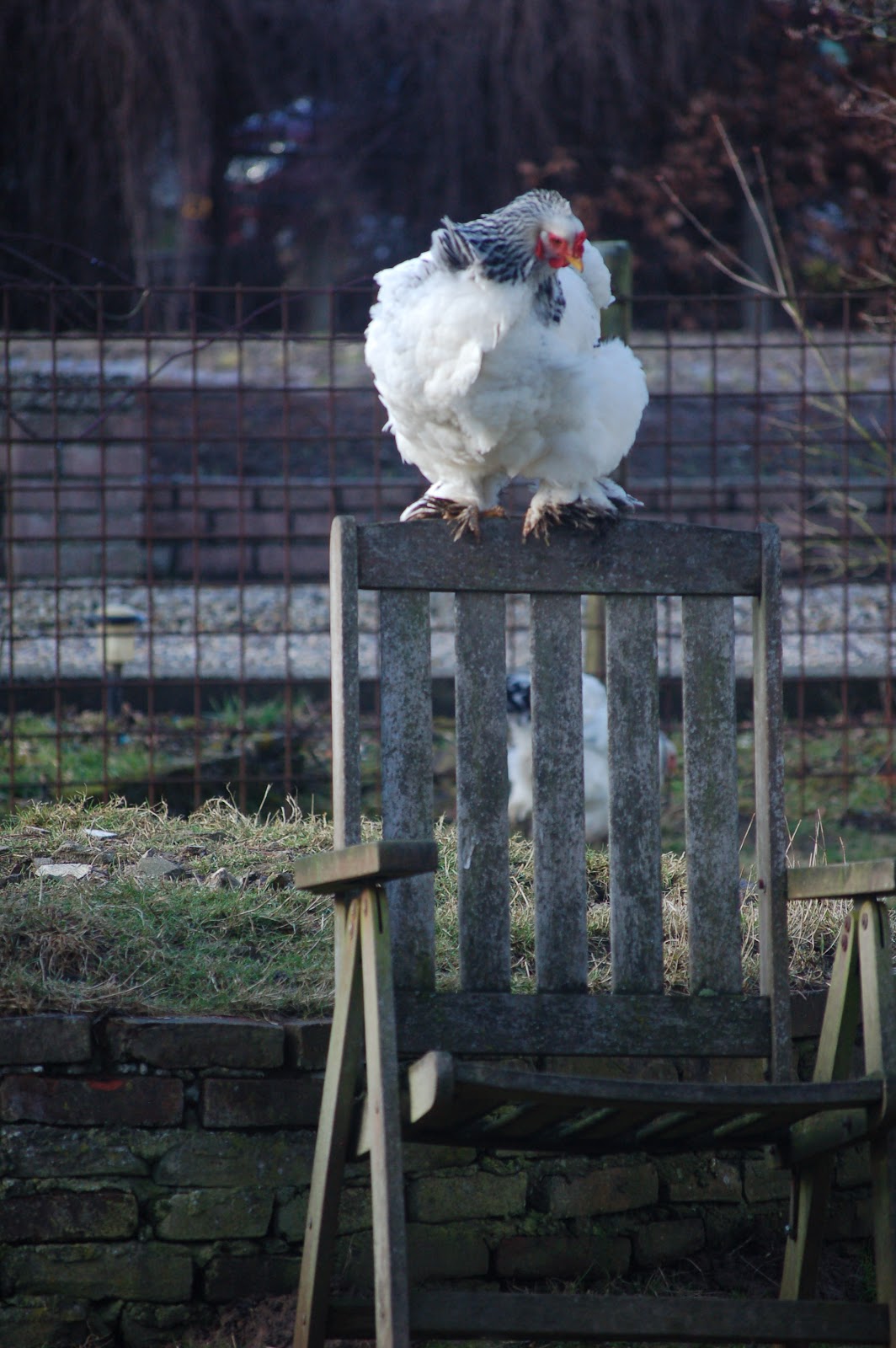 Kip Beatrix (ja in de voorwei wonen de koninklijke kippen) zoekt het hogerop. Lekker zonnen op een oude tuinstoel. Ik hoop dat onze eigen koningin snel duidelijkheid heeft over zoon Friso. En wij duimen voor goed nieuws. Vanmorgen was het lekker weer vanmiddag een paar winterse buien. Tussen de buien door hebben Berry en ik de boomgaard bekeken, we zijn een plan aan het maken voor een verhard stuk in de boomgaard waar de schapen en ganzen droog kunnen lopen als het slecht weer is. De schuilhut zullen we ook op een andere plek moeten maken. Verder zijn we ons aan het verdiepen in drainage-systemen. En ben ik nog bezig geweest voor de voorbereidingen van de 2 daagse aan-de-slag-met-bachbloesems-cursus(introductie-cursus). Mocht je belangstelling hebben stuur dan een mailtje naar esther@springbalsemien.nl . En dan nu eerst een stuk zelf gebakken appel-koek.