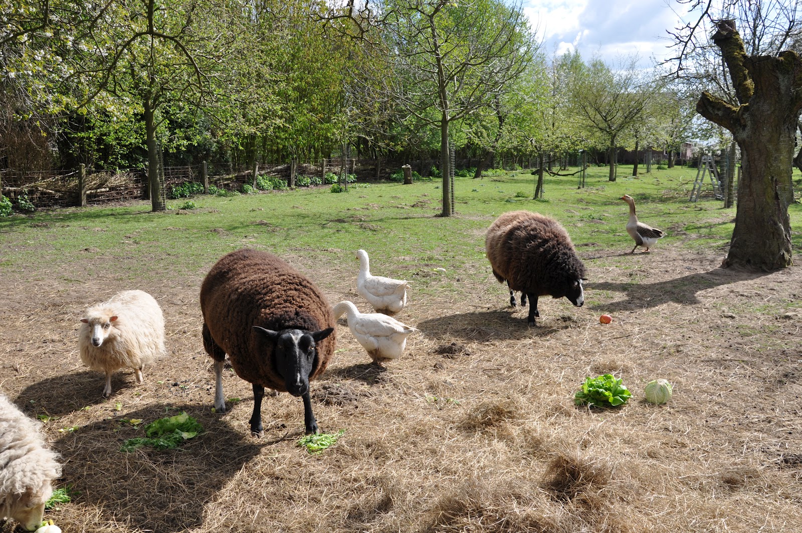 Op maandag krijgen de buitendiertjes altijd groente en fruit van Sandra (landwinkel de Culekamp) en vandaag was het weer smikkelen en smullen. Het was tussen de hagel en de regenbui lekker weer dus dubbel genieten. En wat heerlijk dat de nieuwe pomp werkt dat scheelt een heleboel tijd. Iemand vroeg wat voor pomp het was. We hebben een puls en daar pomt de pomp grondwater uit, dus een grondwaterpomp. Op deze kun je 3 tuinslangen aansluiten dus ideaal. Lijkt wel of de meeste buitendieren dit water ook lekkerder vinden dan ons kraanwater.