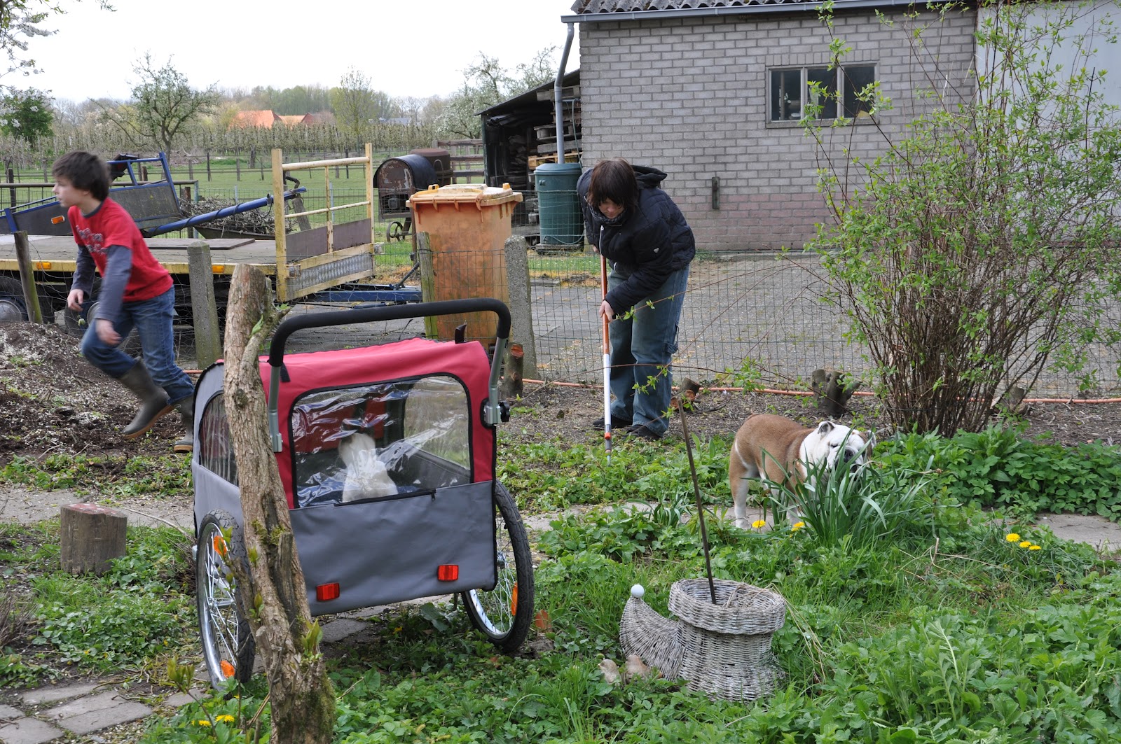 Nu de laurierheg eruit is en de wilg is gekortwiekt tussen de buren en ons in kan dat stuk tuin weer met de opbouw beginnen. Dus vandaag de compost hoop helemaal afgegraven en uitgeharkt. Pip erbij en Bjorn volop aan het helpen. Meneertje Dirk en Silje lekker aan het rennen. Een heerlijke middag. Pieter rent bij de oude composthoop, daar links van is de paddenpoel die blijft en daar weer links van de rozentuin die blijft ook. Maar waar Adrienne aan het schoffelen is tot helemaal rechts naar het kippenhok (niet op de foto) dat stuk gaan we opnieuw indelen. Dus eerst de grond voorzien van eigen compost en wat een mooie compost! Daarna plannen gemaakt dus dat wordt voorzaaien en nadenken over een ludieke afscheiding tussen de buren en ons die niet veel ruimte in beslag neemt dus er komt geen brede haag meer. Vanmorgen zijn Bart, Joey en Adrienne druk geweest met de tuinbank van steigerhout, veel schuur en zaagwerk!