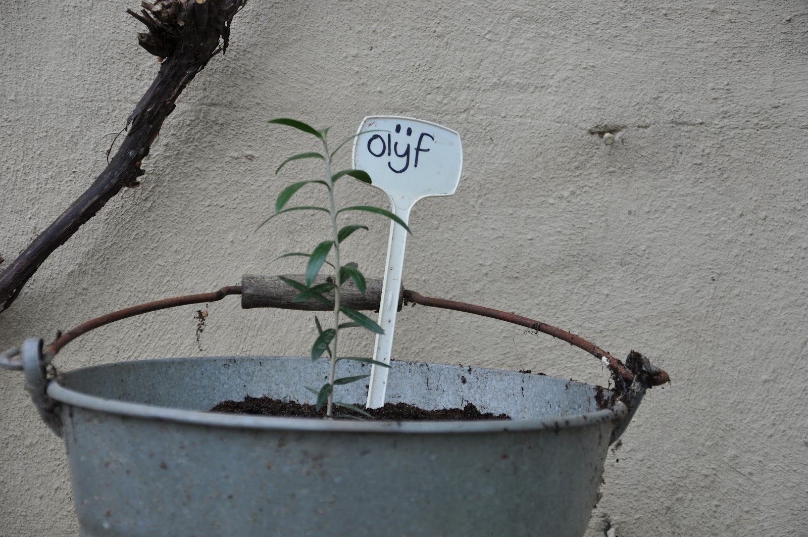 Ik heb al eens eerder over mijn trots geblogt. Mijn zelf opgekweekte olijf uit zaad. Nu groeide olijfje bijna haar pot uit dus heb ik haar vandaag verhuist naar een zinken-buiten-emmer. En ze staat nu tegen het huis aan op de zomer te wachten. Olijfje had al een best wortelstelsel gemaakt. Verder heel veel andere zaailingen in grotere potten gezet en voor de moestuinbak van mams al een bloemkooltje, peterselie en een tomaat apart gezet. Het pad is ook eindelijk wilgenvrij dus we kunnen er weer langs met de kar en de schapen staan volop te knabbelen evenals de ezels en de nijnen aan de wilgentakken. Grappig de schapen zijn dol op de twijgjes en het groen, de ezels echt op de bast en hoe dikker de takken hoe beter en de nijnen eten de twijgjes helemaal op en knabbelen lekker aan de bast.