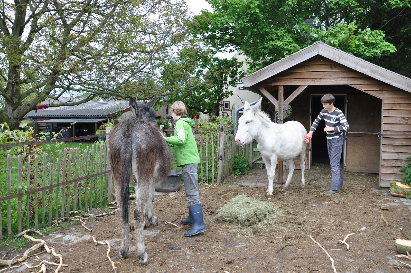 Wat een drukke dag op de tuinderij vandaag en vele handen maken licht werk! Vanmorgen zijn Joey en Bart bezig geweest met een erg leuk project tussendoor….Een erg leuke combi met berkenhout en zoals Berry het noemt meuk. Lees antieke meubeltjes…Wanneer het toonbaar is zal ik het vol trots tonen. Vanmiddag maar liefst 4 jonge tuinders, Pieter, Emiel, Rutger en Marijn. En Rutger en Marijn hebben de ezelmeiden een heerlijke borstelbeurt gegeven en zie ze eens genieten, wie? alle vier! We hebben nog cupcakes gebakken en versiert en naambordjes gemaakt met de houtbrander en natuurlijk nog een klein watergevecht als afsluiting en het hemelwater deed ook nog even mee, een flinke bui uit het niets!
