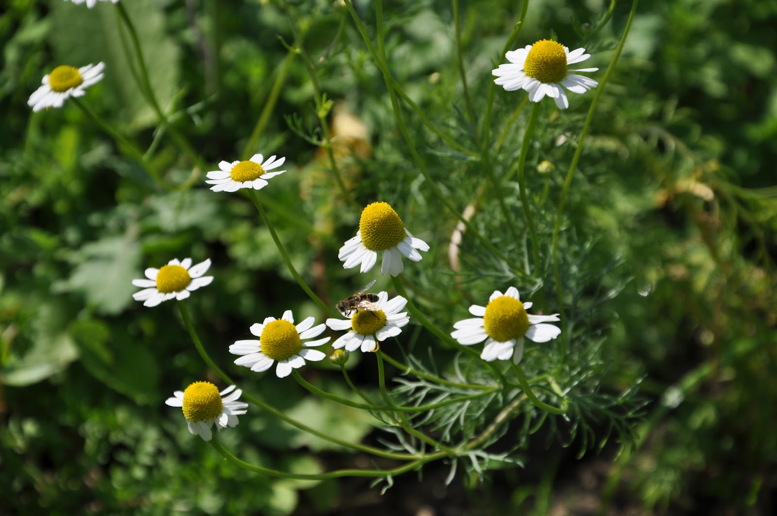 Zelf gezaaid in de winter (binnen) en nu volop in bloei in de tuin, de Roomse Kamille. Ik vind het altijd een gezellig en nuttige plant. Bijna iedereen weet wel dat je er thee van kunt zetten die ontspant. Maar wil je je haar een tintje lichter kook dan dan een handvol bloemen zo’n 20 minuten en masseer het aftreksel regelmatig in je haar als spoeling. Het wordt niet alleen wat lichter maar is ook goed voor de conditie van je haar. Je kunt ook bloemkopjes drogen en deze in een leuk stofje stoppen en in de mand van je huisdier leggen, Roomse Kamille is namelijk parasieten werend. Je kunt de Roomse Kamille ook naast planten zetten die het moeilijk hebben, je zult versteld staan van het resultaat! Vandaag ook de buit van gisteren in de drachtplantentuin gezet, nog een hele klus….Maar wel een heerlijke klus zo in de zon en het plaatje met bloemen al voor me hebbende….