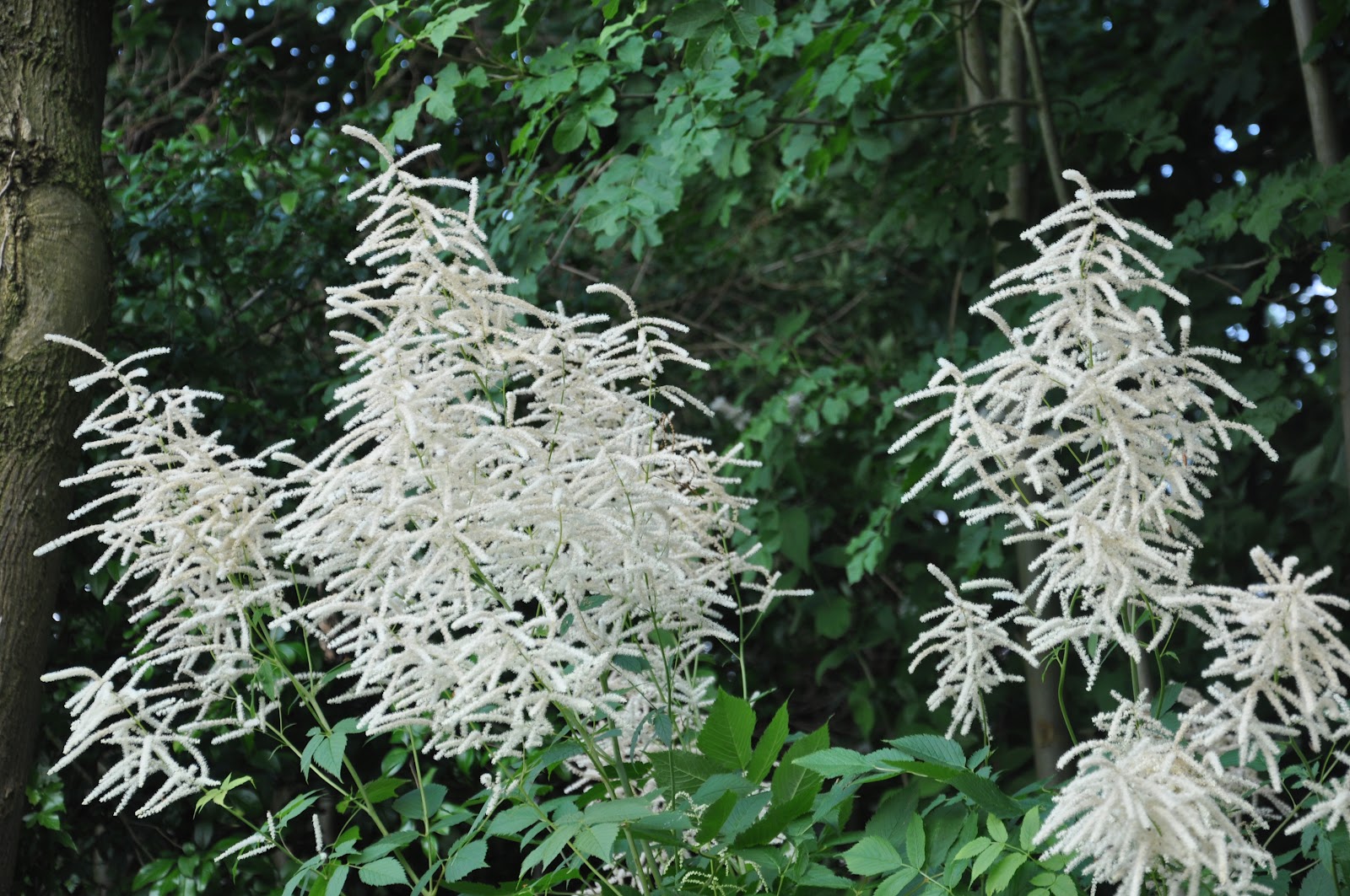 Geiten hebben we niet maar wel de Geitenbaard (Aruncus Dioicus). En je zou het zo niet zeggen maar de Geitenbaard komt uit de rozenfamilie. Een vaste plant die het goed in de schaduw doet en een geweldige achtergrond is voor andere planten. De witte pluimen zijn wollig en qua kleur net een sik van een geit vandaar de naam. De pluimen bloeien van juni tot begin september en doen het als snijbloem erg goed ze staan erg lang op de vaas. En in de herfst verkleuren de bladeren prachtig oranje…