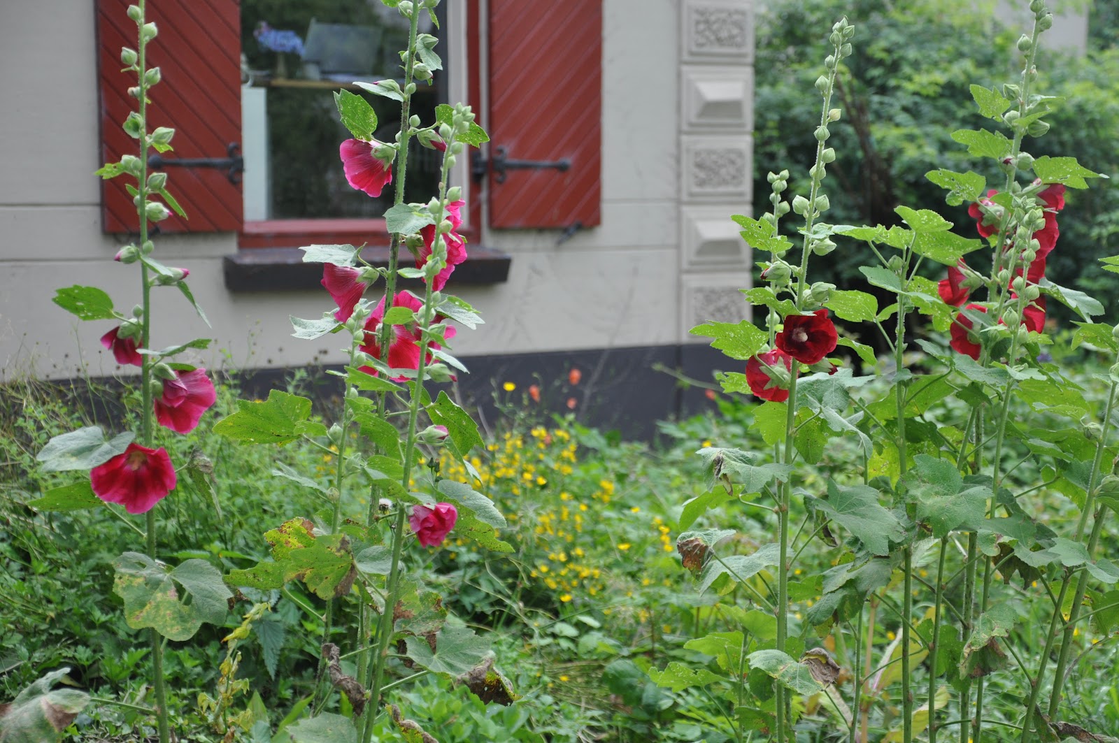 Stokrozen horen voor het huis, het geeft altijd zo’n gezellig welkom vind ik. En bijen, hommels en vlinders kunnen er ook geen genoeg van krijgen van het heerlijke stuifmeel. De stokroos/Alcea Rosa is geen familie van de roos maar van het kaasjeskruid/Malvaceae ook zo’n wanna-have! Inprincipe is de stokroos 2 jarig maar staat de plant goed en lekker in het zonnetje dan zaait zij zich vanzelf weer uit. Zelf zaaien kan ook, wanneer het zaaddoosje bruin gaat kleuren kun je deze makkelijk openen en zie je keurig geordende zaden in een rondje liggen. De zaden kun je direct op de grond leggen met een bergje potgrond eroverheen. Je kunt ze ook binnen voorzaaien en dan als groter plantje in het voorjaar een mooie plek geven. De stokroos laat zich heel mooi combineren met klimrozen en….kaasjeskruid. Suus haar hoefzweer is aan het doorbreken dus we zijn snel naar Peter gereden de hoefsmid in de straat en daar konden we grote watten en blauw plakverband krijgen. De watten in de biotex laten weken en om haar hoef gewikkeld, vastgezet met het blauwe plakverband, waterzak eroverheen…Peter gaf ook nog pijnstillers mee dus ze heeft een halve dosering gehad. en natuurlijk heel veel knuffels en kusjes (En daar geniet ze altijd enorm van de lieverd)
