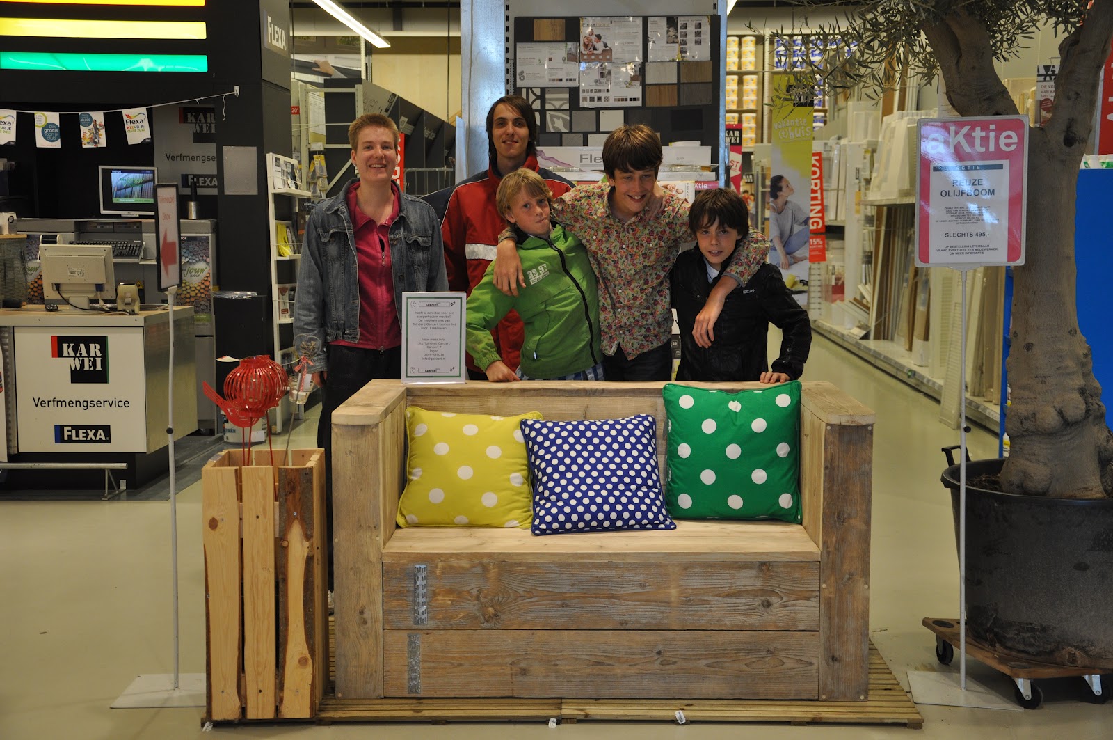 Vanmiddag zijn we op visite geweest bij de Karwei in Tiel. Daar staat ons showmodel, een bank van steigerhout. De manager van de Karwei heeft aangeboden dat wij zo wat reclame mogen maken en de Karwei heeft een leuke eye-catcher staan. We hebben het 1e telefoontje al gehad, yez!!! En bij een showmodel horen showmodellen haha kijk ze staan alle kanjers! Ik mag best wel een beetje trots zijn heh op het showmodel en mijn modellen….
