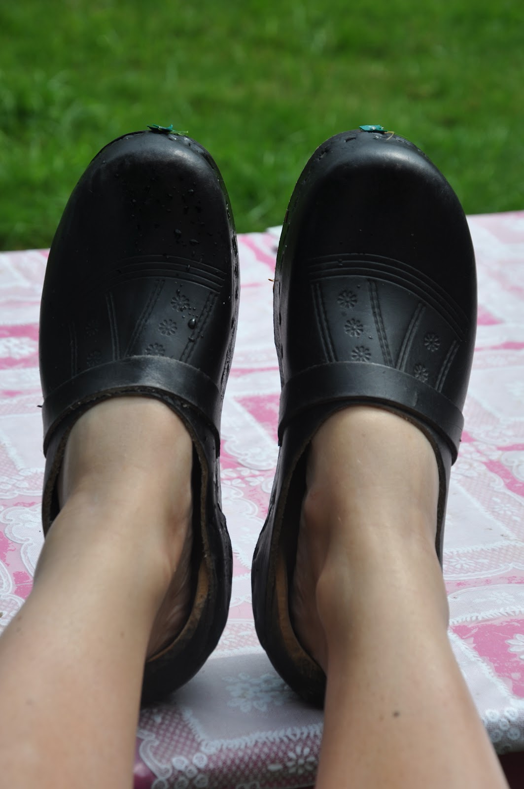 Maatje 35 en dan goede en vooral veilige werkschoenen vinden met een stalen of beschermde neus…. Klinkt simpel maar is het absoluut niet. In de winterlaars is het me gelukt maar die zijn nu veel te warm. En op slippertjes of crocs door het natte gras lopen is niet aangenaam maar verder niet onveilig. Maar op deze muiltjes een ezelhoef verzorgen met het risico dat ezel lief op je voet gaat staan is minder veilig en prettig. Of grof tuinwerk doen ook niet handig maar wat dan wel? Wooden Shoes, de klomp is de uitkomst maar dan graag wel een net wat apartere….En toen liep ik op internet tegen deze originele schippersklompen aan. Ik geef toe het is even wennen maar…..veiligheid boven alles.