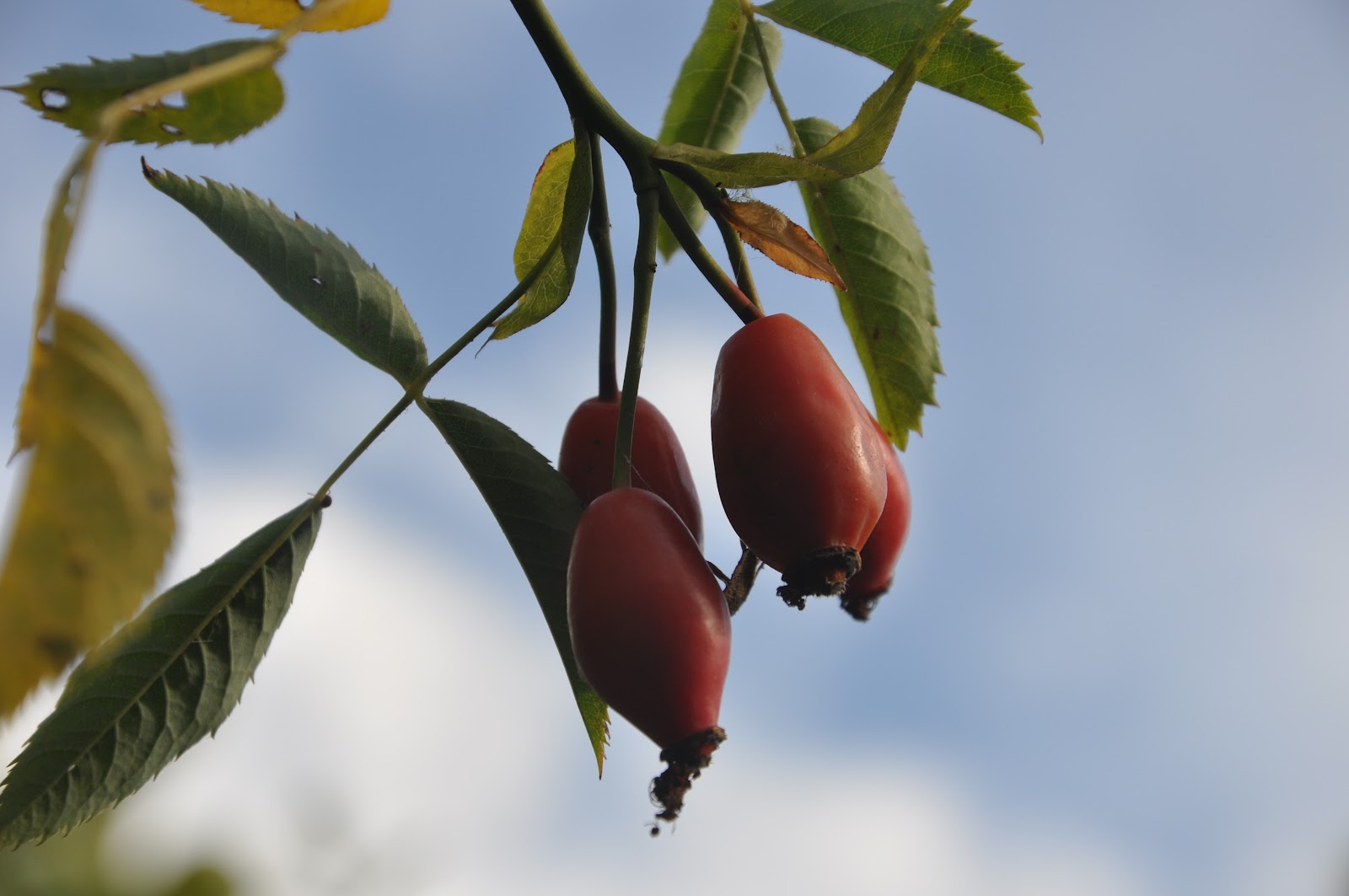 Terwijl de andere rozen nog volop bloeien geeft de rosa canina al prachtige bottels en veel, heel veel! Dus kunnen we en, en,en doen…..rozenbottel/duindoornjam maken, een mooie herfstkrans maken en de vogels laten snoepen!