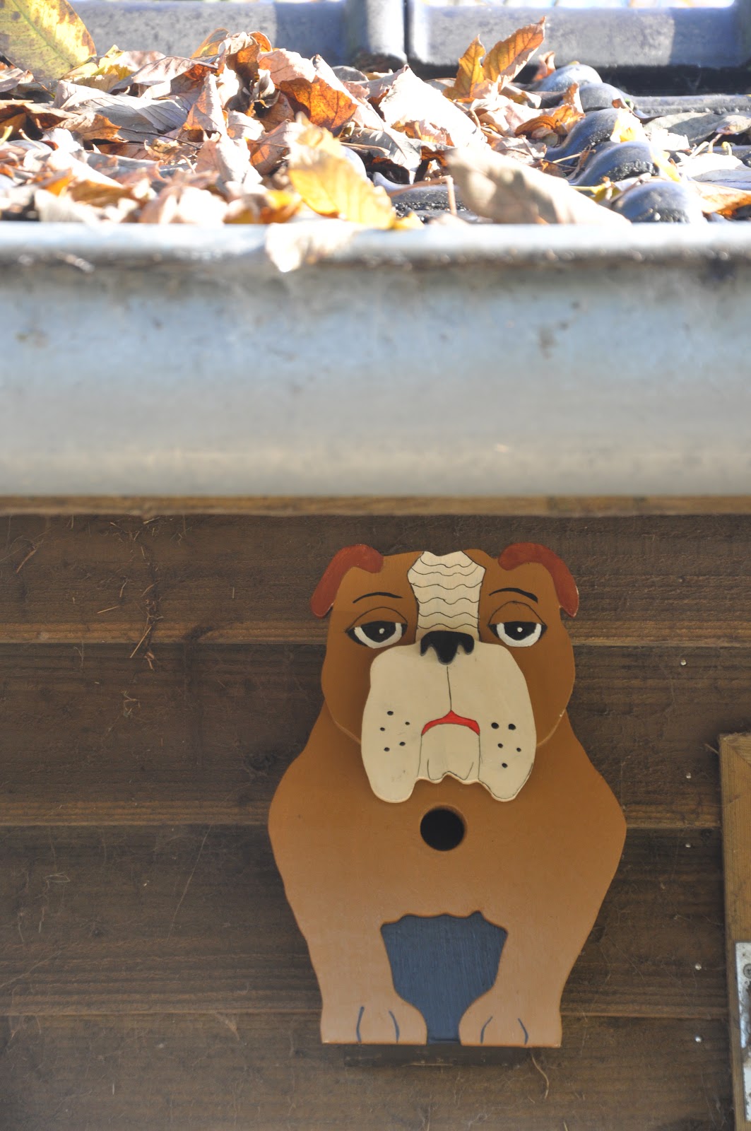 Het leuke van op een markt staan, in dit geval de Ladies Day bij de Karwei bouwmarkt is; dat je andere ondernemers ontmoet. En vooral de kramen met zelfgemaakte producten hebben dan sterk mijn voorkeur. Zo kocht ik dit geweldige vogelhuis in de vorm van Bjorn & Bep (onze Engelse Bulldoggen) bij meneer Henk de Wit. En heb het vogelhuis net opgehangen bij de stal, staat grandioos!