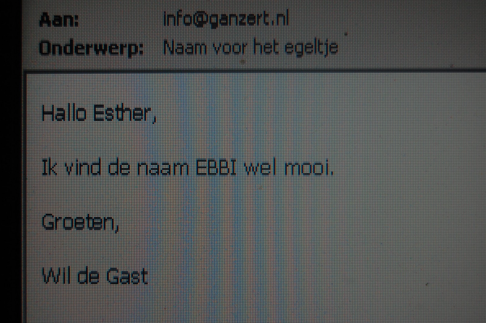 En dit is dus de winnende naam! Ebbi het egeltje. Wil gefeliciteerd en mail je adres nog even dan kan het presentje op de post. Iedereen bedankt voor het meedoen het kiezen was dan ook erg moeilijk uit zoveel namen met een E. Eefje is het meeste ingestuurd ook een mooie naam, Evi en Evelientje waren ook favoriet. Maar vanaf nu heet het egeltje: Ebbi. Ebbi eet goed en staat smorgens vroeg al aan het deurtje te bonken voor vers water en lekkere brokjes. een snelle leerling dus onze Ebbi.