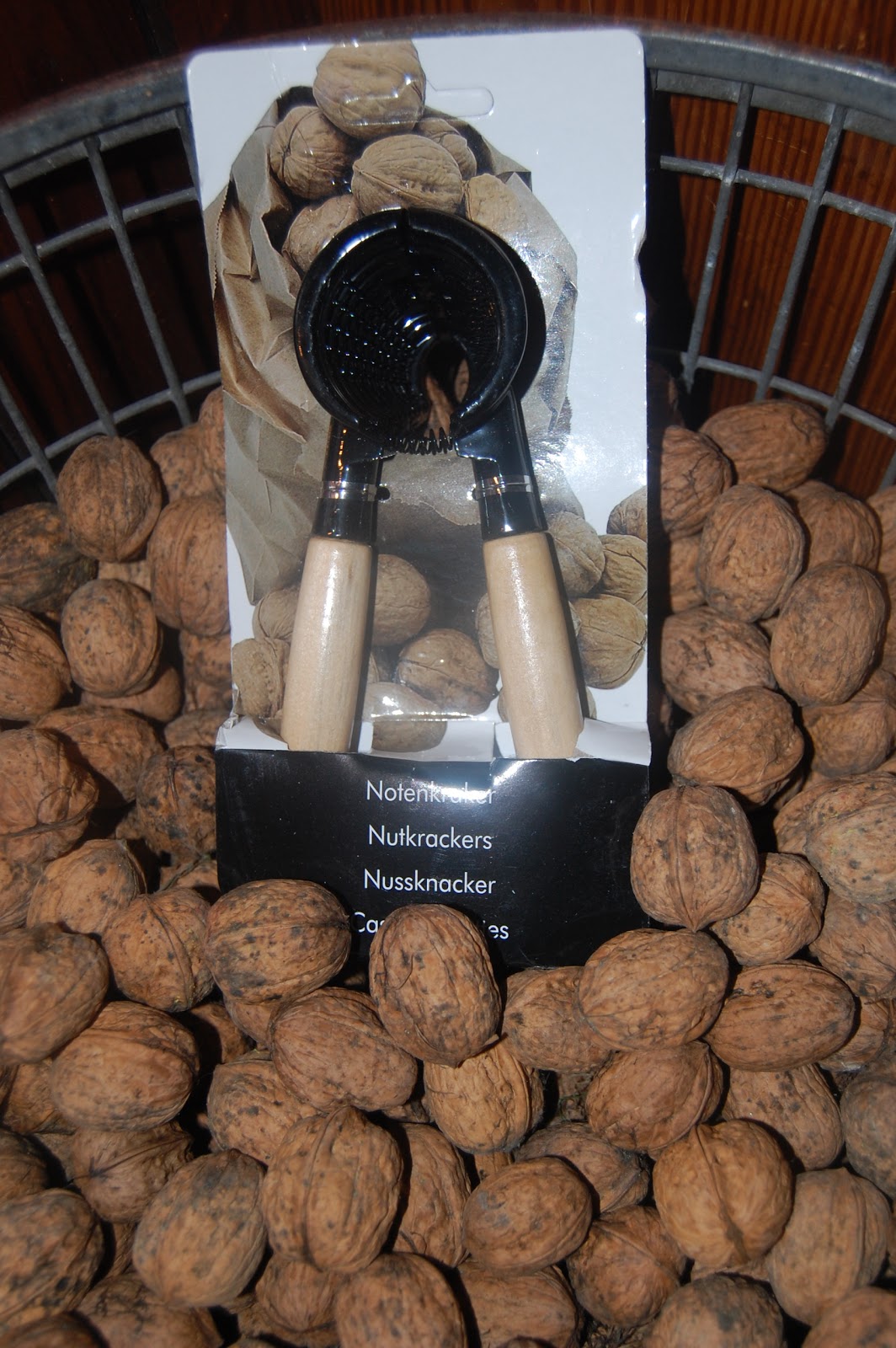 Vanmorgen met Bart en Astrid de walnoten uitgezocht voor de kerstmarkt van aanstaande vrijdag. Ik blijf me elk jaar weer verbazen hoeveel er gewoon niet mooi blijven dus niet verkoopbaar zijn. Maar gelukkig hebben we de 1e 8 kilo mooie noten al in zakken zitten. Een leuke notenkraker erbij met een recept dat is toch een leuk kerstcadeau! De hele vieze noten gaan naar de varkens die vinden het een delicatesse de andere net niet te verkopen ga ik zelf kraken en op de cognac met ahornsiroop zetten en roosteren voor een heerlijk tussendoortje of voor in gerechten. Ook ga ik op zoek naar een kleine walnotenolie-perser om er zelf olie uit te persen. De olie is namelijk rijk aan vitamine A, B1, B2, B3, B5, B6, C en de mineralen calcium, zwavel, fosfor, cloor, koper, ijzer, magnesium, natrium en zink! De walnotenolie is heerlijk in salades maar ook puur op de huid te gebruiken ze werkt namelijk verzachtend en genezend bij huidaandoeningen. Ook kun je de olie als voeding voor je haar gebruiken. Kortom vele mogelijkheden. De bloesem van de walnotenboom is overigens ook een Bachbloesem en helpt heel goed bij veranderingen en het geeft je een “dikker schilletje”.