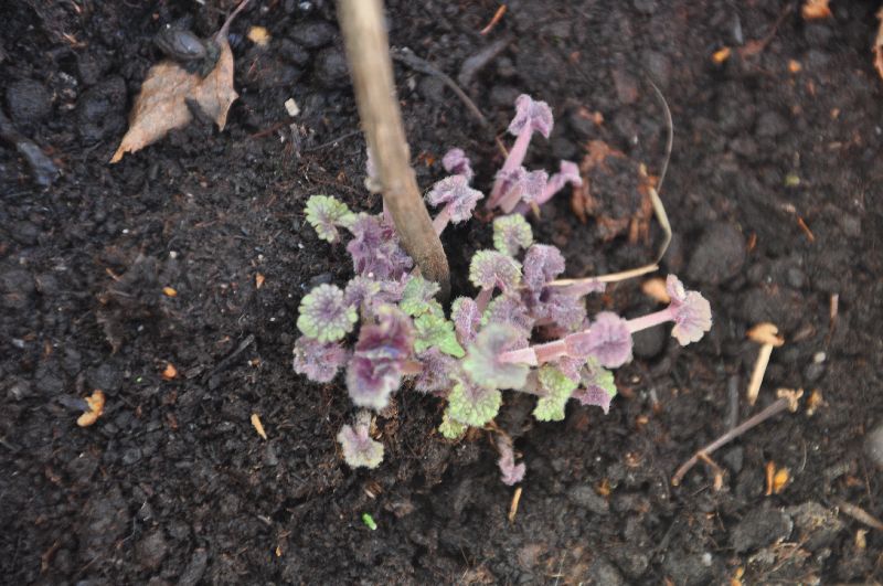 Ik kan al het nieuwe leven wel uit de grond kijken! En soms lukt het…..kijk maar hier komt d dropplant al boven piepen. Ze staat in een oude tas met potgrond dus ik was benieuwd of alles niet stuk gevroren was. Maar nee, jippie!