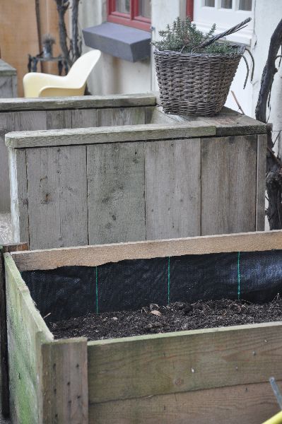 De composthoop is nu met de grond gelijk…..1 kar afgevoerd naar de stort, dit was de bovenste laag. 1 kar naar de lieve overburen. Dan deze grote houten kist gevuld, daar komt nog een laag potgrond overheen en dan heerlijke kruiden erin. Lekker makkelijk zo bij de keukendeur. En het restant komt als onderlaag in een oude trog waar koekoeksbloemen in komen, in de drachtplantentuin.