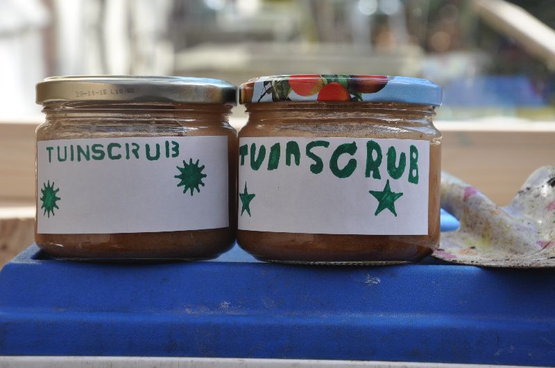 Een heel handig en heerlijk goedje gemaakt. Scrub voor zwarte (uh groene) handen! En die hebben we hier regelmatig! We hebben de scrub ook al getest en goedgekeurd!
