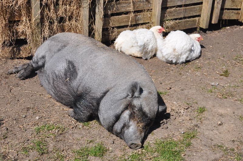 Aah wat een heerlijke lentedag en dat op de vrije zondag. Volop genieten dus net als de buitendieren. Lekker opwarmen in de zon en kijk Emma eens heerlijk liggen met de 2 kippendames.