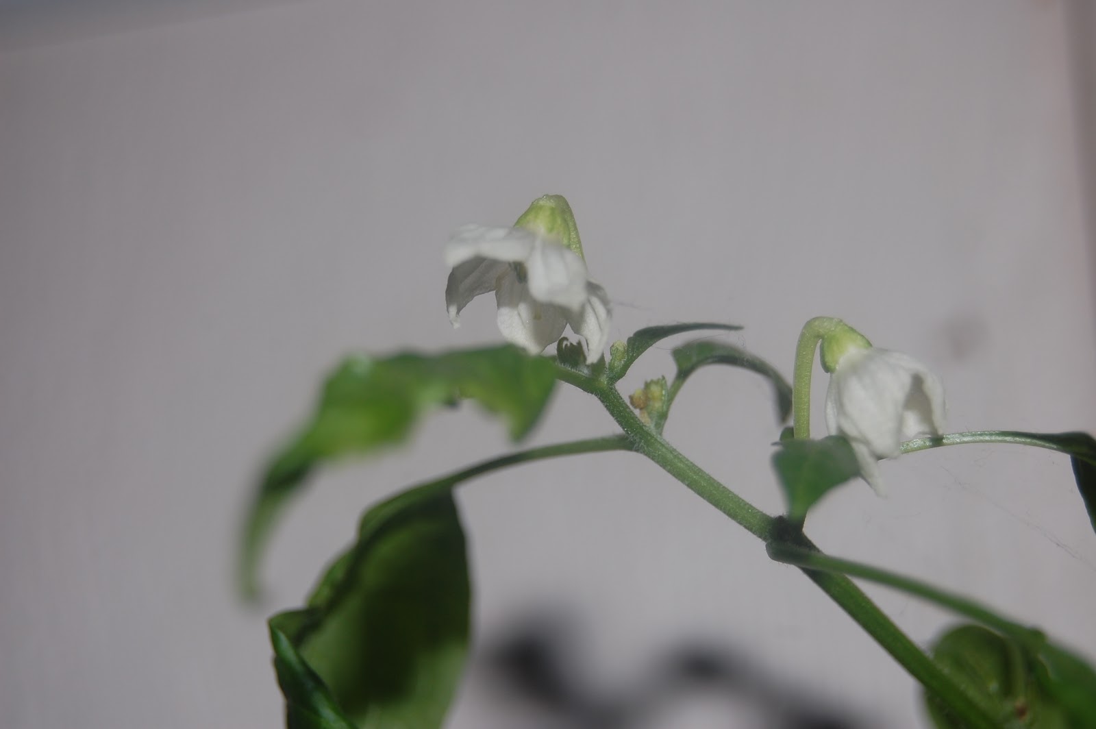 Dit is een peper-plant met verhaal…..in het voorjaar gezaaid maar het duurde maar en het duurde maar voor er iets groens te zien was. Welk soort het precies is weet ik niet want er zaten verschillende biologische zaden in het peperzakje van Vreekenzaden. Afijn een niet zo’n beste zomer dus het plantje groeide ook niet best…Op verschillende plekken gestaan en aan het eind van de zomer op de composthoop gegooid. Daar bleef het plantje in leven dus dat vond ik ook weer sneu dus in een andere pot gezet met wat compost erbij en binnen in de keuken gezet en daar staat ze nog steeds en nu……met bloemen! Het zijn lieve witte bloemen dus past helemaal in het kerstplaatje…Wie weet straks in hartje winter onze eigen sambal? Voor een eenvoudige sambal heb je maar 10 verse pepers nodig deze opensnijden, hou je van heet dan laat je de pitjes erin hou je helemaal niet van heet (zoals ik) dan de pitjes/zaden verwijderen. Pepers in stukken snijden en samen met wat korrels zeezout en een scheut zonnebloemolie in de keukenmachine tot een pasta draaien. 2 maanden houdbaar!