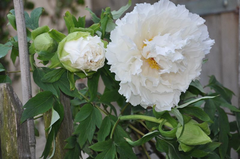 Prachtig, de boompioen. Niet te verwarren met de pioenroos. En dit jaar meerdere knoppen heb er wel 5 geteld.