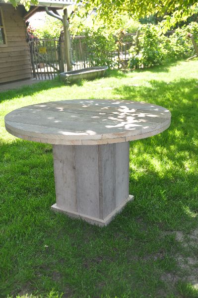 Een grote ronde tuintafel, zo kun je iedereen zien als je bijvoorbeeld een etentje in je eigen tuin geeft.