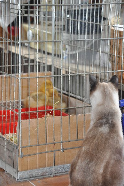 Pip de siamees vindt het prachtig en inmiddels Essie en May ook..Ook een mooie taak voor de tuinders!