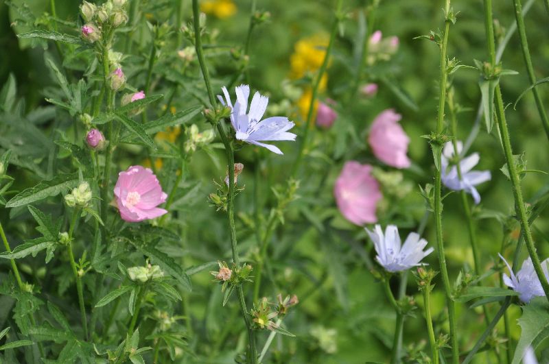 Spontaan ontstaan maar ik vind de combinatie geweldig….roze Kaasjeskruid met de Chirorei.