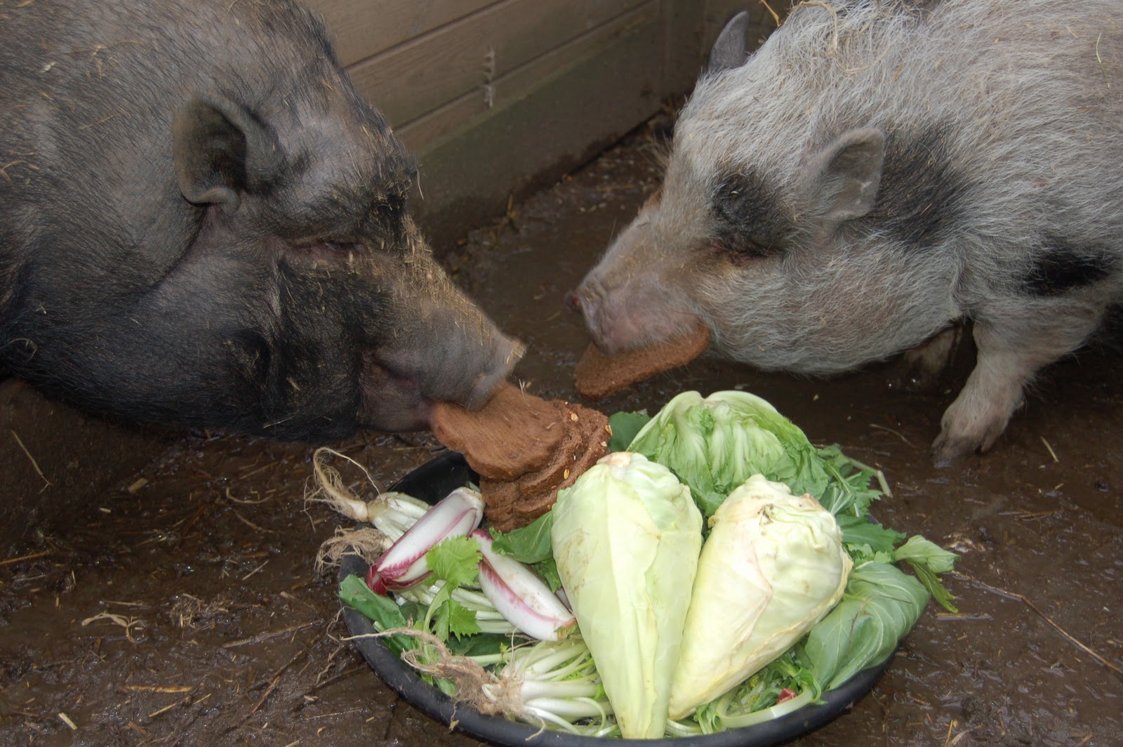 Elke week krijgen de buitendiertjes groenten van Landwinkel de Culekamp. Groente en fruit wat niet meer verkocht kan worden maar nog wel eetbaar is. En deze week kregen we ook nog eens heel erg veel brood van de voedselbank waar de moeder van Berry werkt. Er komt daar soms zo enorm veel brood dat het ook daar teveel is. Er staan een aantal dier-adressen op de lijst van de voedselbank voor als er veel teveel brood is. Ouwehands dierenpark bijvoorbeeld maar ook zij hadden al meer dan genoeg en zo waren wij dit keer de gelukkige! Super fijn want de ganzen en schaapjes zijn we al aan het bijvoeren en zowieso lusten alle buitendiertjes graag oud brood. Ook de vogeltjes delen riant mee in deze broodronde. Dus namens alle dieren van hier een dikke dank-je-wel aan Sandra, moeder Grietje en de voedselbank!