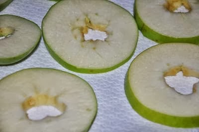 Haal de klokhuis uit de appel en snijd de appel in dunne schijfjes. Deze kun je besprenkelen met citroensap om het bruine kleurtje tegen te gaan. Dan op dik keukenpapier leggen, niet op bakpapier. En een aantal uren in een oven van 50 graden leggen op een rooster. De appeltjes zijn goed als ze rimpelig zijn en niet te hard.