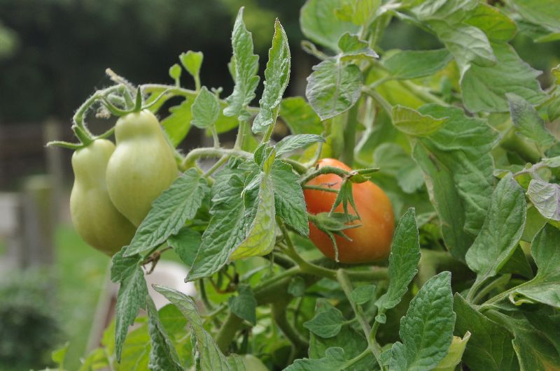 De Roma-tomaten gaan kleur bekennen. Dan zullen de Hazelnoot-tomaatjes eerdaags ook wel volgen. Heerlijk krijg nu al trek in een verse tomatensoep met ook Basilicum uit eigen tuin.