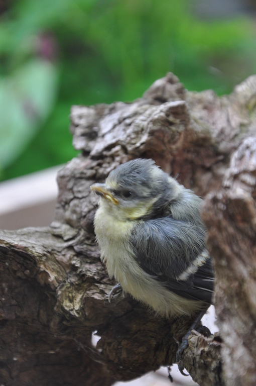 Op de voedertafel ligt een mooi stuk hout dar heb ik Mees op gezet.