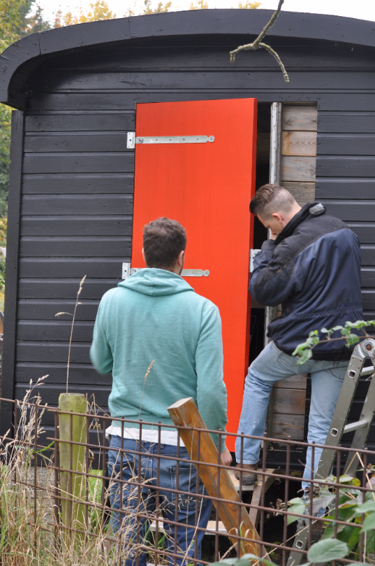 De deur hangt!