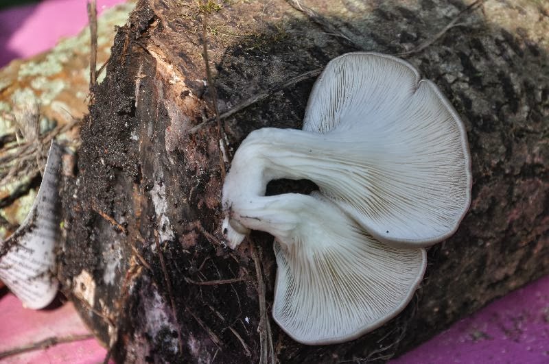 Alle oesterzwammen verzamelen!!! Ze bloeien volop de berkenstammen met oesterzwammen, leuk! Zelfs een shii-take stam nog in de boei. Ze staan al klaar voor de oogstdag van morgen.
