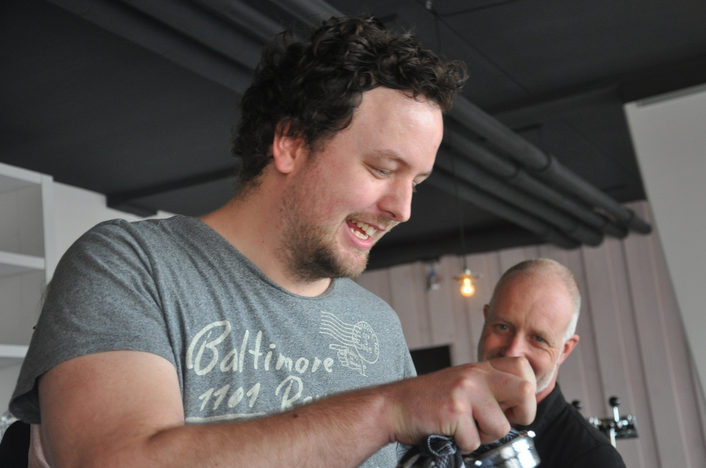 En vandaag kwam er één van de top barista’s van Lola Bikes and Coffee training geven aan de wielrenner, aan Rick (links op de foto ws bij elke lezer al bekend), Marije, Petra, Jeanet en Erwin.