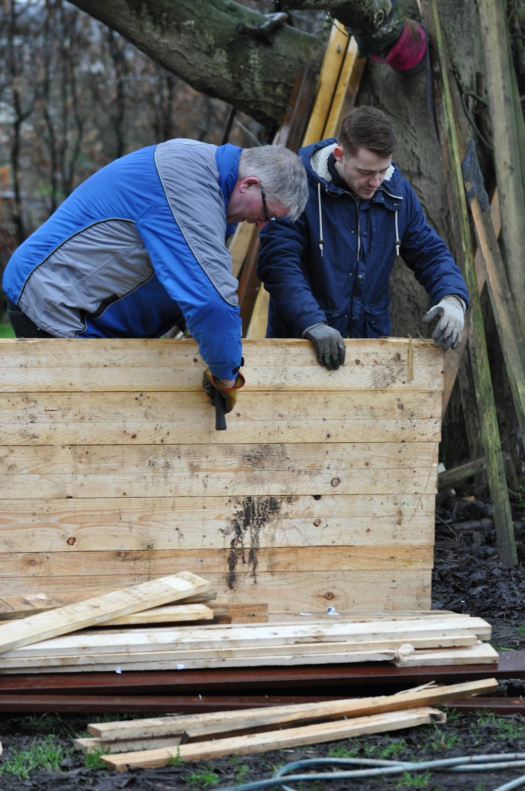 Marinus en Michiel zijn al begonnen met het loshalen van alle planken.