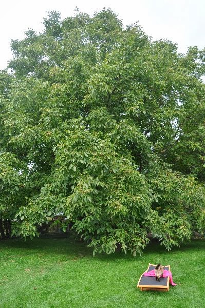 Een ieder die ooit bij ons is geweest zal zich deze boom heugen. In de zomer als heerlijke parasol, in de herfst door haar prachtige kleuren en heerlijke noten, in de winter door het mooie silhouet en de winterse versieringen die er jaarlijks in hangen en in het voorjaar het frisse groene blad.