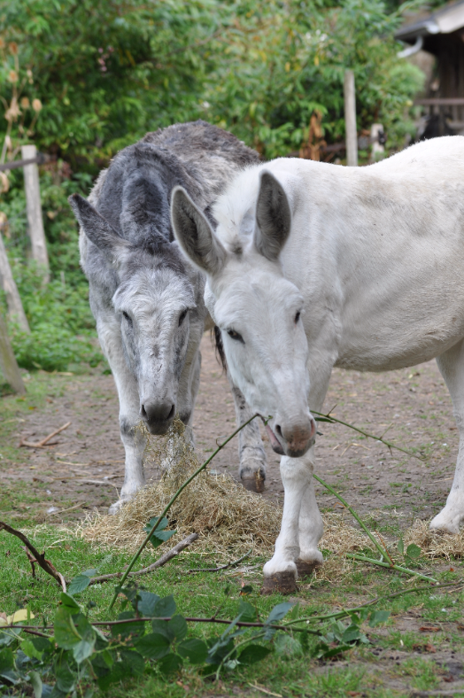 De ezels, cavia’s en Rozemarijn het konijn vinden het snoei-afval heerlijk!