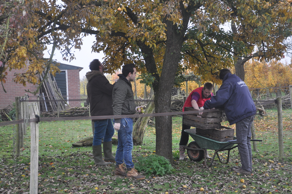 Vanmorgen hebben Matthijs, Bart en Rick onder de deskundige leiding van Bernadette weer 2 kisten van de bomen gehaald.